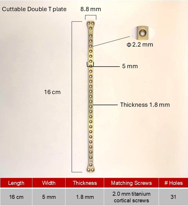 - Double T Cuttable Plate, for veterinary orthopedic surgery.