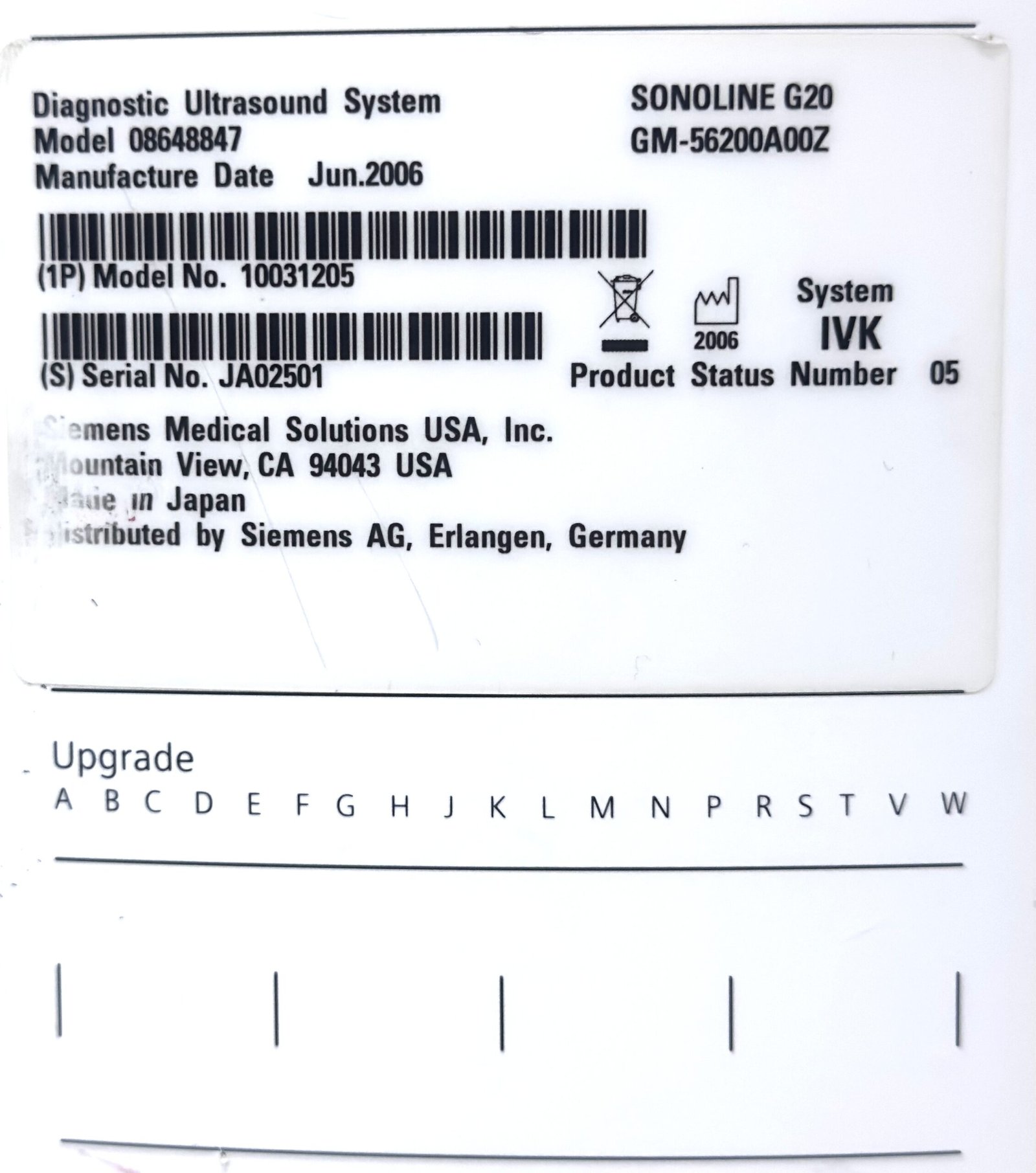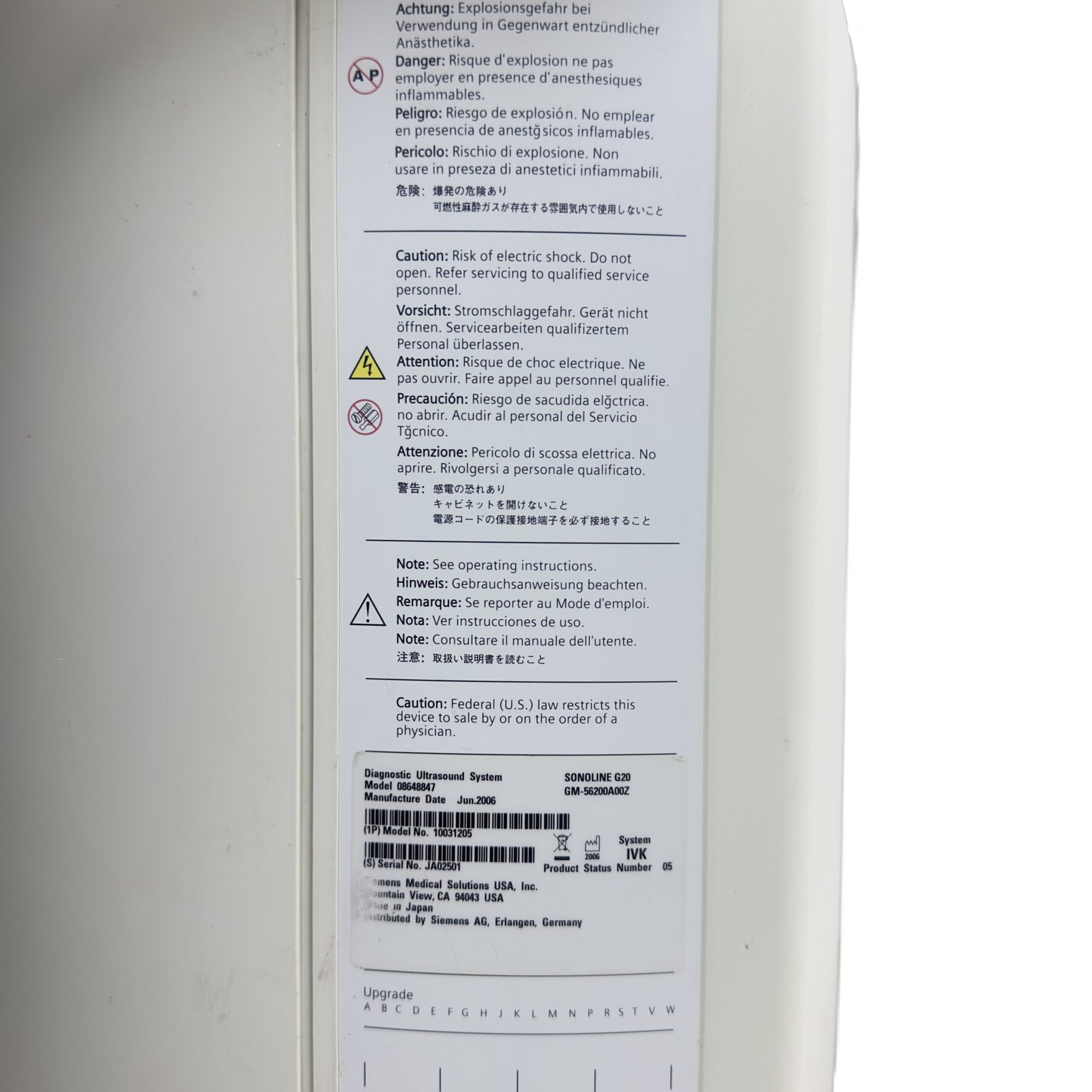 | Product Name | Used Siemens Sonoline G20 Ultra Sound |